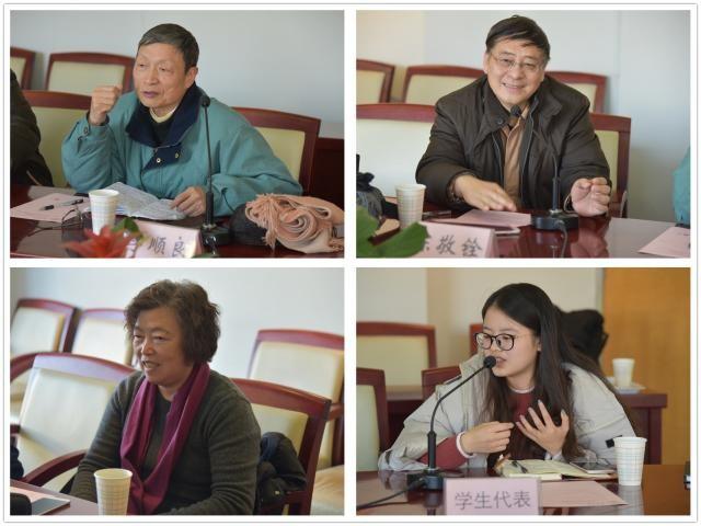 与会的老同志纷纷交谈、分享了各自的工作体会。李顺良老师就青年教师的培训方面进行了探讨,很多青年教师想上好课,却不知如何上好课,这就需要老教师对青年教师的指导。陈敬铨老师谈到,新时代有了有新气象,学习十九大精神,从思想上跟进新时代十分重要。怎样上好思政课,如何将课程思政化,这也是新时代的要求。课程思政化首先要有思想,要用思政课提升学生的素质。陈老师以“模糊教学”为例,引申到模糊与精确的辩证思想,实现人文理工交融。丁霞萍老师谈到对青年教师的鼓励与带领政策,希望能加强管理和激励制度的建设,使各位青年教师以更饱满的热情投入教学和科研工作中。