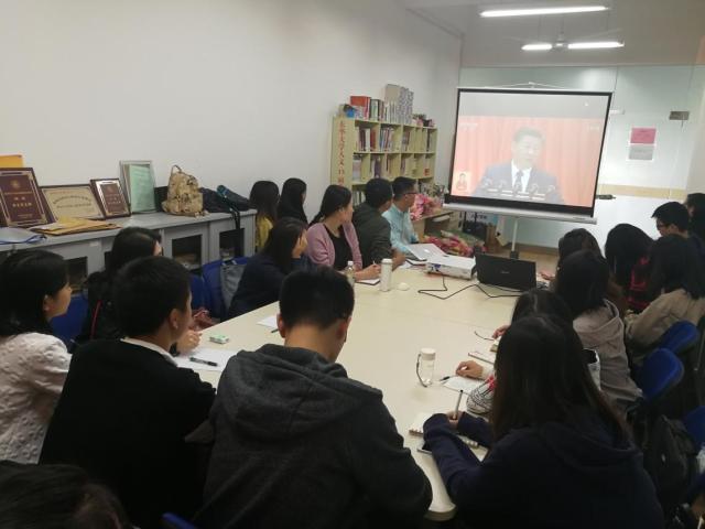 10月18日,3003新葡官方网站党委组织学院师生党员、青年团员深入学习党的十九大精神。上午9点,学院各教工党支部、学生党支部以及各团支部在学院党委的统一组织下,在学院楼、综合楼、学生宿舍区等地集中观看十九大开幕会直播,并开展形式多样、内容丰富的线上线下主题学习讨论活动。下午3点,学院召开党委中心组扩大会议,校党委副书记刘淑慧与学院党政负责同志、教授代表、辅导员代表等共同围绕党的十九大报告全文进行深入学习和交流研讨。
