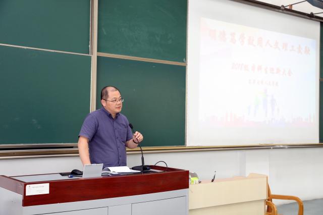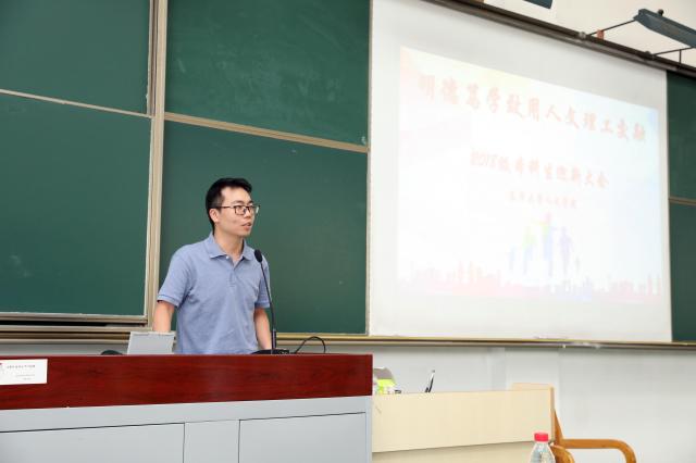 廖大伟老师代表学院全体教师对222名新生的到来表示热烈欢迎,对新同学的学习生活表示了殷切关切。他详细介绍了学校、学院和本科各个专业的师资、教学条件等情况,他指出:认识到大学与高中的不同,学会自主学习,要有积极求知的欲望,希望每个学生都有努力的汗水洒在东华。廖院长对全体新生提出了殷切希望:各位新同学能够快速的的适应大学生活,要意识到科目的多样性,未来适应社会的多元发展各位新生应该感受到身边的变化。