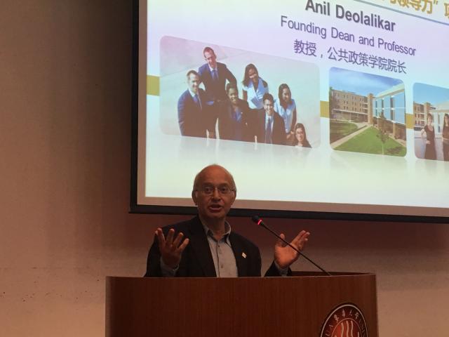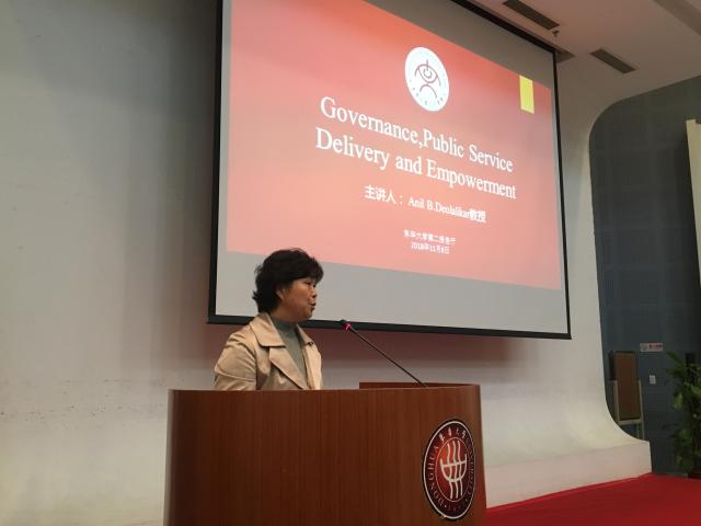 2018年11月8日下午,美国加州大学河滨分校公共政策学院院长Anil B. Deolalikar访问3003新葡官方网站,并在图文信息第二报告厅,为3003新葡官方网站师生作了题为《亚洲发展中国家的授权与公共服务提供》的学术报告,3003新葡官方网站党委书记王英出席本次活动并致欢迎辞,3003新葡官方网站王锐兰教授,副教授刘奕、尹艳华、邓志锋一同出席本次活动。