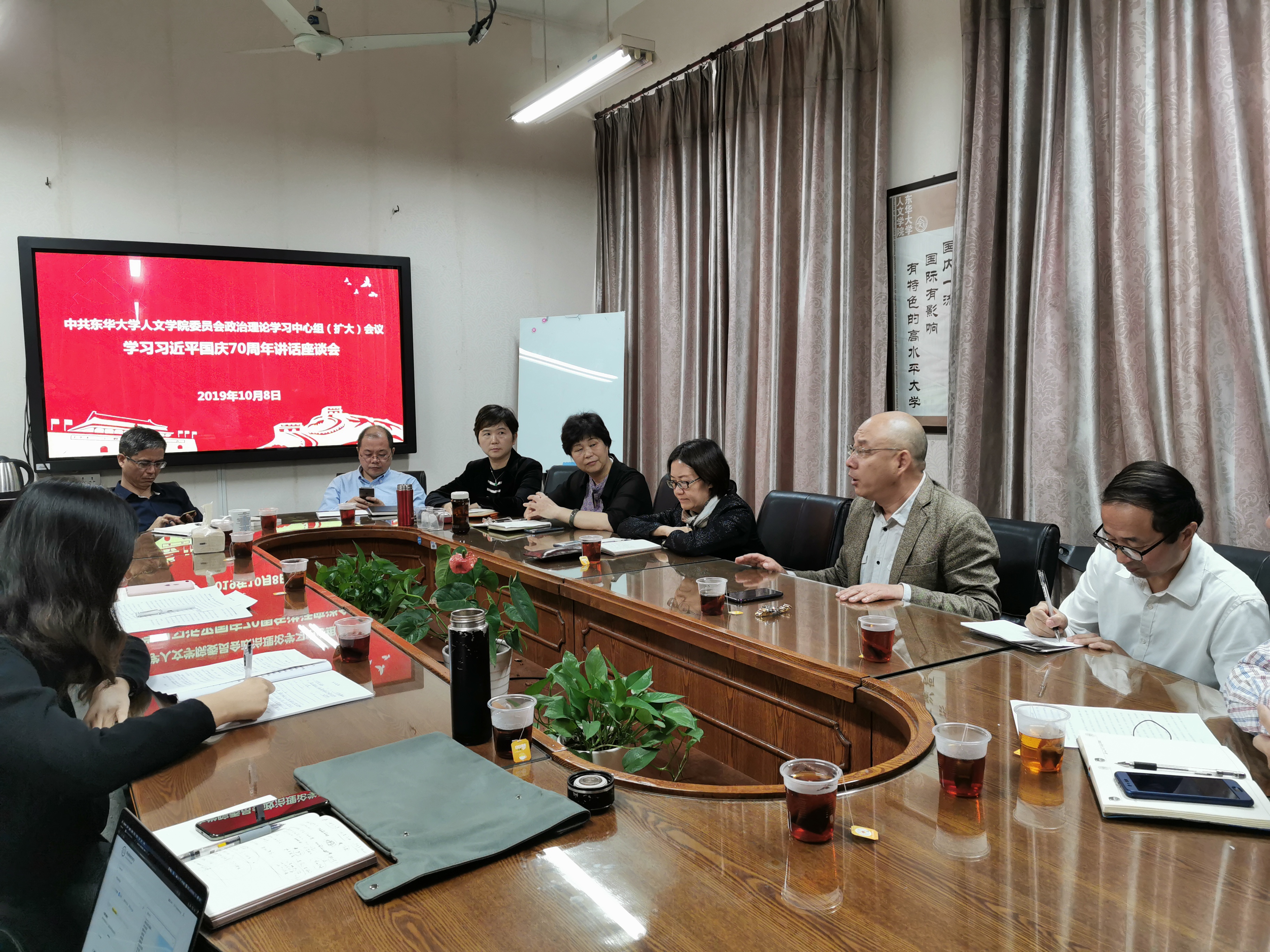 10月8日上午,为庆祝新中国成立70周年,深入学习领会习近平总书记讲话精神,3003新葡官方网站党委召开政治理论学习中心组(扩大)会议,组织学院党委班子成员、教师代表与学生代表,围绕习近平总书记在庆祝大会上发表的重要讲话,畅谈学习体会,分享观看庆祝大会和阅兵式的感想与收获。3003新葡官方网站党委副书记刘淑慧出席本次座谈会,会议由3003新葡官方网站党委书记王英主持。