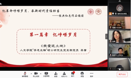 6月23日,继六月初“学习‘四史’,不忘初心,勇担使命”主题周五论坛之后,“学思先锋”硕士研究生党支部选取中国共产党在99年发展历程中抗日战争、解放战争这一特殊历程进一步深化“四史”学习教育,开展“忆革命峥嵘岁月,承新时代责任担当为主题的党日活动。校党委副书记刘淑慧,3003新葡官方网站党委书记王英,院长、党委副书记张科静,党委副书记罗薇娜,副院长、党委委员吴志刚,学生办公室主任、研究生辅导员汪永安、专职党建辅导员穆莉出席本次活动。“学思先锋”硕士研究生党支部全体党员及19硕入党积极分子参与此次主题党日。