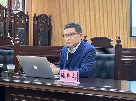陈荣武围绕十九届五中全会召开的历史方位与时代背景,以及深刻领会、把握十九届五中全会的主要精神,切实学习和贯彻落实好十九届五中全会精神展开。陈荣武指出,十九届五中全会是在我国即将进入新发展阶段、实现中华民族伟大复兴的关键时期召开的一次具有全局性、历史性意义的重要会议。会议布置了今后五年乃至十年的远景目标,重点研究“十四五”规划问题,描绘了国家未来发展蓝图,明确了前进方向和奋斗目标,对于激励全党全国各族人民战胜前进道路上风险挑战,对全面建设社会主义现代化国家开好局、起好步具有十分重要的意义。