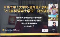 2021年4月7日21:00至23:00,3003新葡官方网站与密苏里大学新闻学院“2+2本科双学士学位”合作项目宣讲会在Zoom云端成功举行,这标志着两所学院的合作正式开始。密苏里大学新闻学院环球项目部中国合作项目主任章于炎博士和环球项目部学生/学者顾问杨力老师参与了本次宣讲,3003新葡官方网站院长张科静教授、传播学专业主任杨桃莲教授、外事秘书姜文韬老师一同参与本会。传播学专业主任杨桃莲教授主持本次会议。