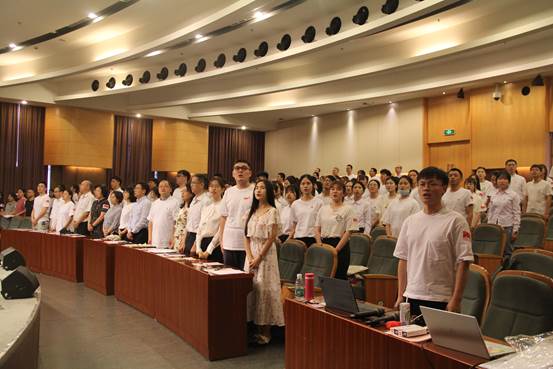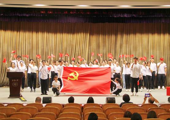 特邀党建组织员丁霞萍老师带领29位新党员在党旗下郑重宣誓,全体师生党员重温入党誓词,通过宣誓仪式,号召全体师生党员永葆政治本色、永葆革命和奋斗精神,在铮铮誓言之中,回想入党之初对党和人民的庄严承诺,牢记为人民服务的使命。