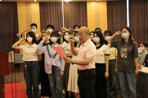 中国共产党的入党誓词,是新党员在入党时对党和人民作出的庄严承诺,同时也是党员必须遵守的行为准则,体现了我们党对党员的基本要求。全体预备党员面对鲜红的党旗,在贺善侃老师带领下,新党员们举起右拳,庄严宣誓,铿锵的誓言表达了坚定不移跟党走的决心和为党为民履职尽责的斗志。