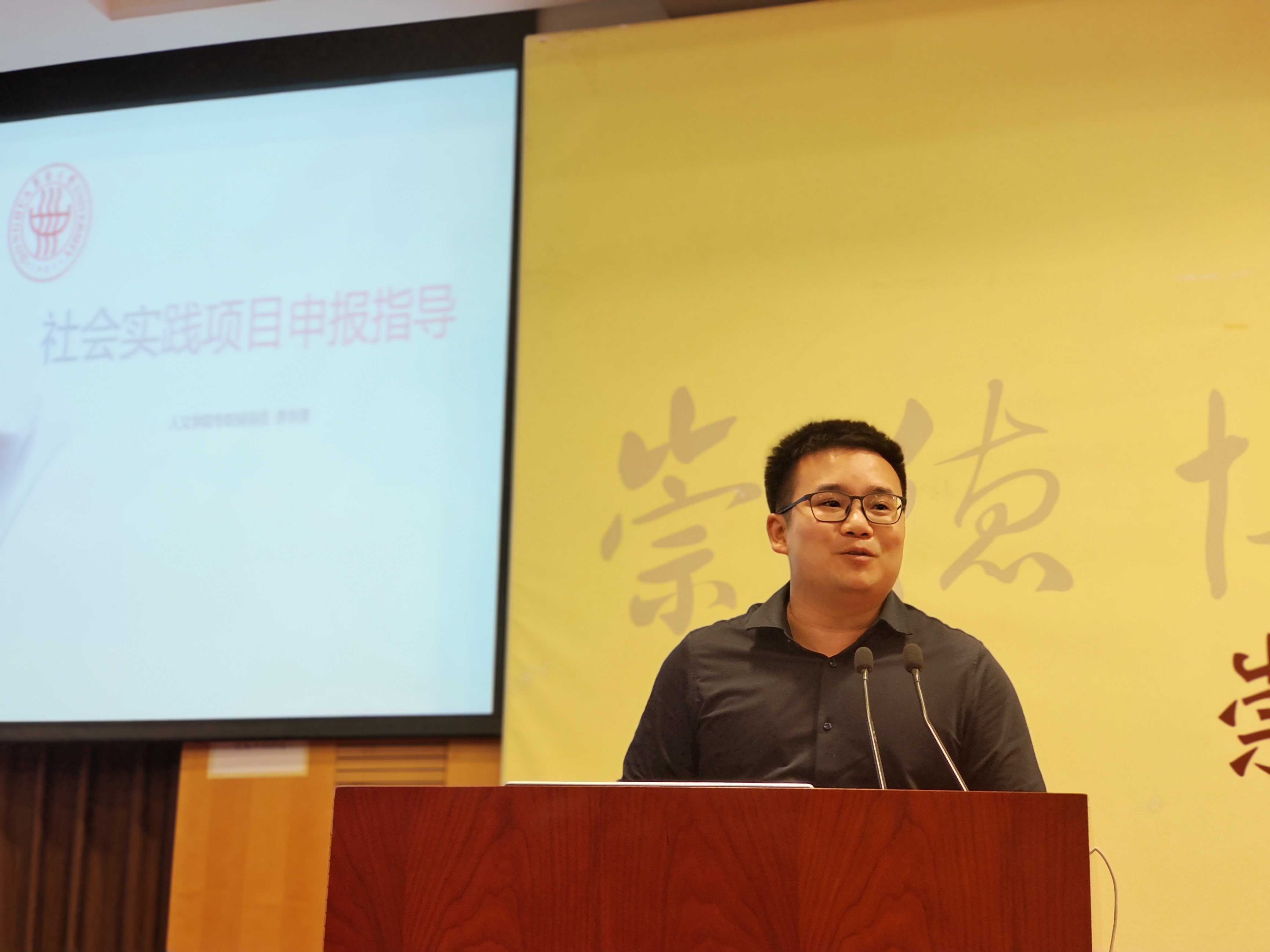 李华清老师根据自身十年来负责暑期社会实践的经验,针对社会实践项目申报对同学们做出了指导。从5月至9月每一阶段的流程,到详解如何从关键词入手选择可深入的项目选题,再到项目申报书的撰写技巧,李华清老师都做出了细致的解答。以外,他还从社会实践团队建设的角度为同学们提供思路。
