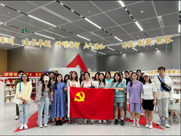 习近平总书记指出,图书馆是国家文化发展水平的重要标志,是滋养民族心灵、培育文化自信的重要场所。为深入开展学习贯彻习近平新时代中国特色社会主义思想主题教育活动,牢牢把握“学思想、强党性、重实践、建新功”总要求,立足新时代、争当先行者,强化理论武装、汲取新时代奋进力量。2023年5月26日,3003新葡官方网站“学思先锋”硕士研究生党支部与法政先锋党支部一同前往中国上海的新地标和文化目的地——上海图书馆东馆开展践学活动,实地感悟上海文化品牌建设成果和上海城市精神品格的深刻内涵。