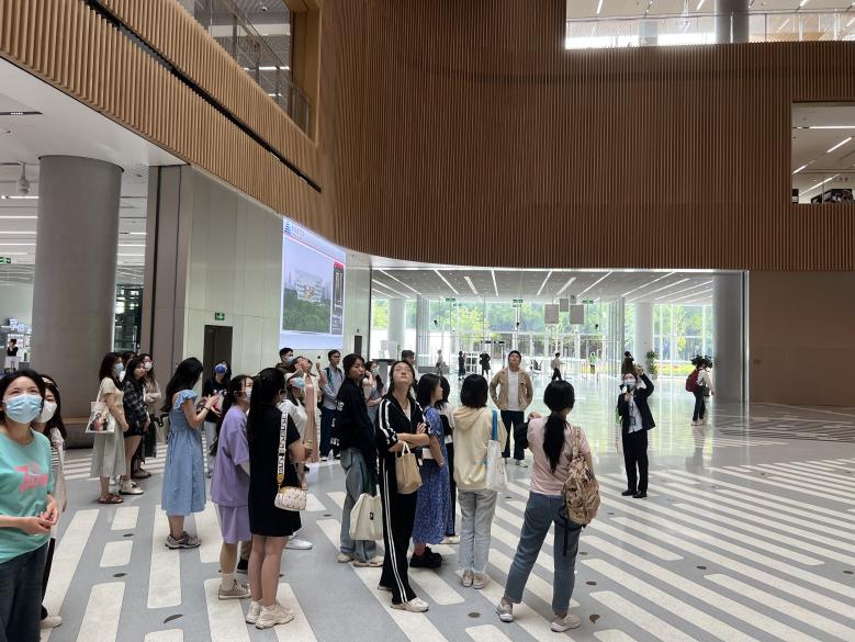 随后,在讲解员的带领下,党员们开启了图书馆的畅游之旅。讲解员详细介绍了馆内设计、空间布局、艺术作品、智能设施和文创产品等。一楼大厅地面上水磨石艺术品《往来春秋》,三楼阅读区以水滴形式呈现的艺术品《陪伴》,在图书馆七楼的阅读推广区、城市客厅以及馆藏精品等区域、还有可以触屏检索的智能书架,这些都让支部成员近距离感受到了智慧复合型图书圣地的别样魅力和文化、科技和艺术联合驱动的现代化图书馆建设成果,全方位了解上图从“数字化图书馆”到“智慧化图书馆”的提升演变,真正实际体会“向世界讲好上海故事”的重要价值。