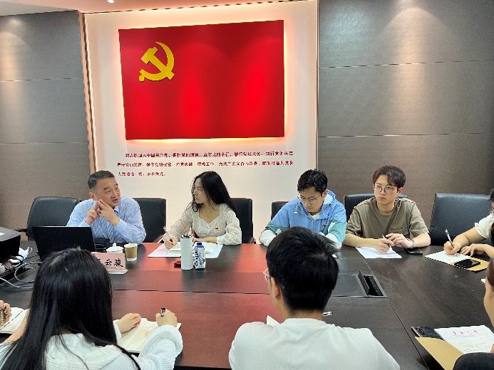 党课过程中,同学们立足自身专业特色和就业方向踊跃提问。面对同学们提出的“新闻传播专业学生该如何参与到中国式现代化进程中去?”这一问题,王云骏从新闻传播学科发展和演进的角度出发,阐释了传播与写作在当下这个流量经济和注意力经济时代已成为新型生产力。借此,他勉励全体新闻传播大类专业的党员同学,要深入学习和把握马克思主义新闻观,厘清与思考马克思主义在中国传播和发展的内在逻辑与现实意义,更要将专业所学积极运动到实践和工作之中,用眼睛发现中国精神,用耳朵聆听人民呼唤,用内心感应时代脉搏,身体力行,讲好美丽中国故事,传播可信、可爱、可敬的中国形象。