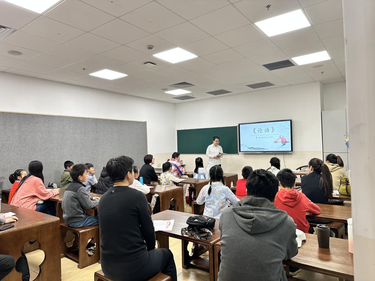 在本次体验活动中,杨彬教授与学生们以诵读《论语》为纽带,共同踏上了这场探寻千年文化的奇妙之旅。他还向参与体验活动的学生们提出希望,愿他们可以与诗文相伴,与经典同行,深切体悟那个时代的独特魅力。