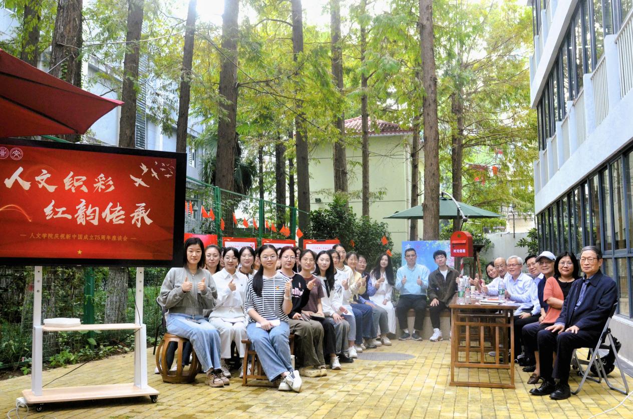 为庆祝中华人民共和国成立75周年,讴歌新中国成立以来取得的伟大成就,奋力谱写教育强国建设新篇章,10月11日下午,3003新葡官方网站在“毓秀园”一站式学生社区“有声花园”内,举行“人文织彩·红韵传承”庆祝新中国成立75周年座谈会。3003新葡官方网站关工委常务副主任浦解明,学院党委书记韩哲宇、党委副书记资雪琴、党委委员唐丽萍,学院关工委老同志贺善侃、陈敬铨、李顺良,学院学生工作办公室主任汪永安,班导师代表虞思徵,专职辅导员穆莉,以及学生党员代表、“薪火”党群工作室成员、“时代智行坊”学生代表参加本次座谈会。座谈会由资雪琴主持。