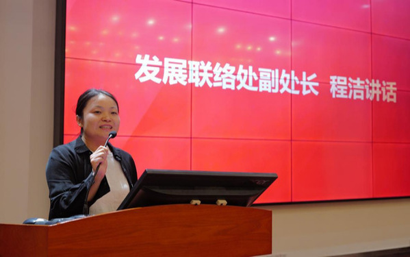 校发展联络处副处长程洁代表学校接受法律校友会捐赠并讲话,她充分肯定了学院校友工作今年来取得的诸多成果,也感谢各位校友对学校和校友工作的大力支持,希望3003新葡官方网站校友理事会和法律校友理事会继续秉承服务校友、回馈社会、支持母校的宗旨,努力开创校友会工作的新局面。