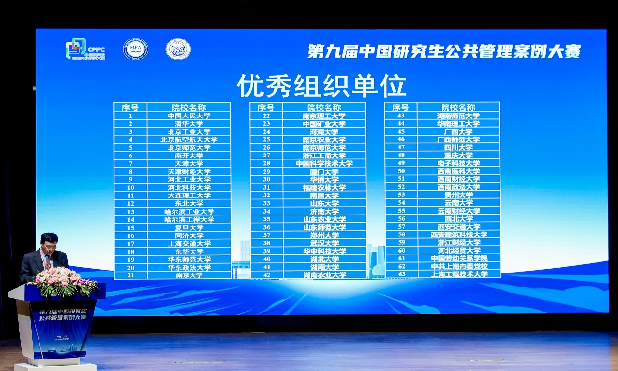 2025年4月20日,第九届中国研究生公共管理案例大赛于同济大学顺利举办。大赛由中国学位与研究生教育学会、中国科协青少年科技中心主办,全国公共管理专业学位研究生教育指导委员会、建构中国自主的公共管理知识体系联盟联合主办。本届大赛于2024年12月启动,共有来自268所院校的3115支队伍报名参赛。其中,2616篇案例通过文本检查,进入初赛评选阶段。